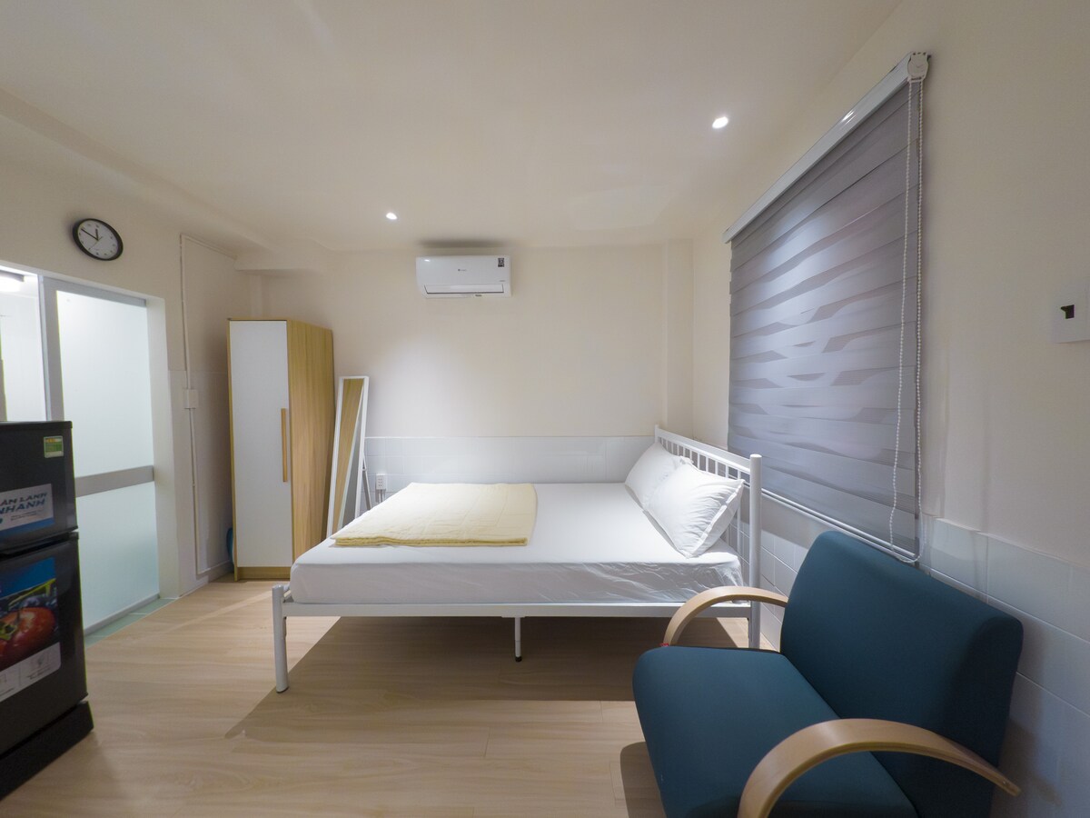 El meu apartament amb serveis és al carrer Phan Dinh Phung, al districte de Phu Nhuan. Es triga 5 minuts al districte 3 i 10 minuts a l'aeroport. - Una unitat d'estudi amb finestra i llum natural. - 1 llit còmode - Bany: tovallola, aigua calenta, xampú, gel de dutxa, paper higiènic - Cuina: nevera, estris de cuina bàsics - Ascensor, rentadora, televisor intel·ligent, aire condicionat, sofà, armari, assecador de cabells, wifi ràpid. - Accés/sortida independent fàcilment Oferim el servei de neteja 2 vegades a la setmana i aparcament GRATUÏT per a motos.