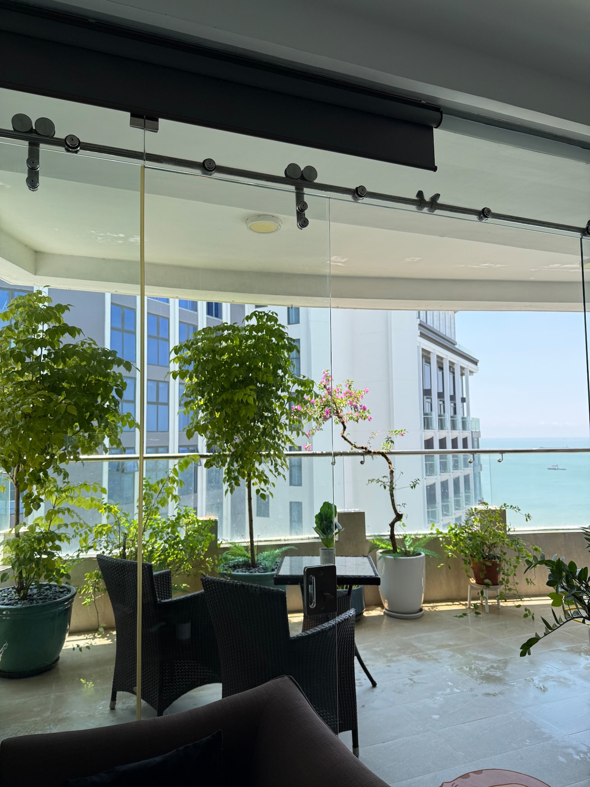 Apartament 1BR minimalista i totalment moblat a la planta 15 amb espectaculars vistes al mar. Ideal per a parelles o famílies amb un nen menor de 5 anys. Perfectament situat al costat de la platja Back (platja de Thu ! Vân). Temps estimats de caminada fins a l'equipament i els serveis propers: - A 2 minuts de la platja de l'altre costat del carrer. - A 5 minuts de la botiga més propera les 24 hores (GS25). - A 8 minuts del supermercat més proper (Lotte Mart). Ascensors ràpids. Netflix gratuït. També tenim una moto disponible per llogar.