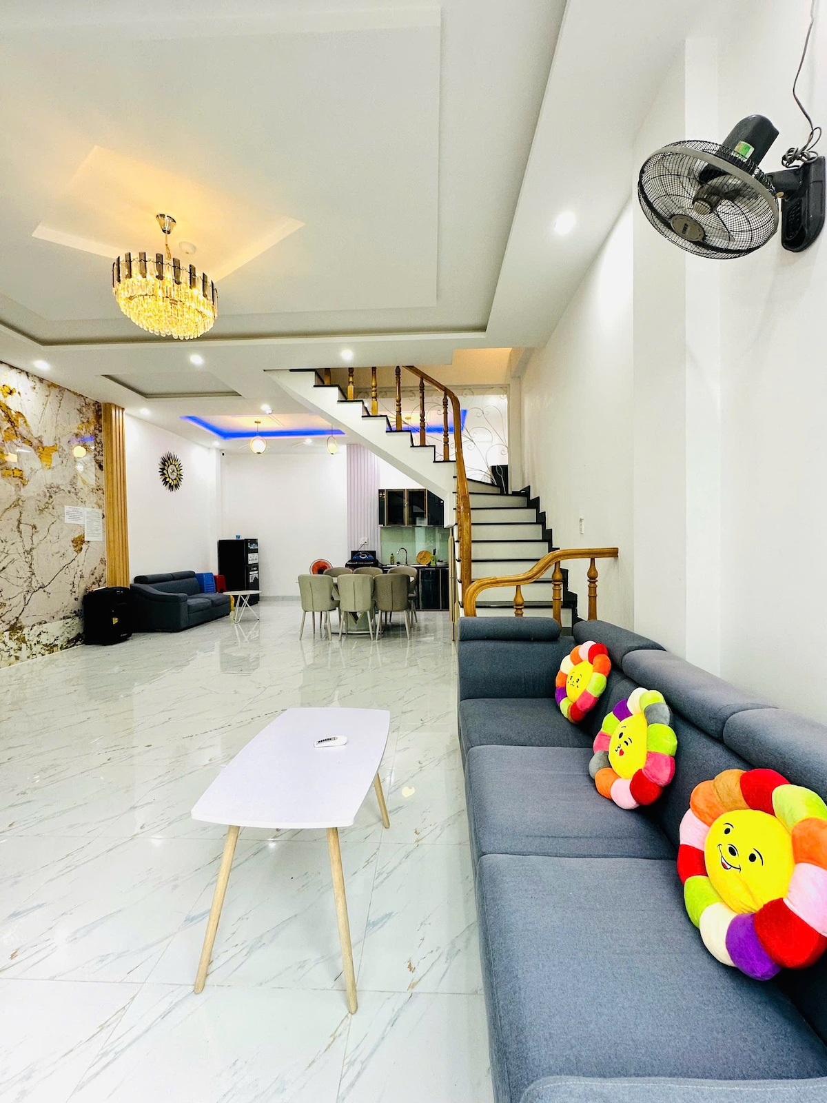 Accedeix a qualsevol lloc quan la teva família s'allotgi en aquest allotjament cèntric. Mai House Nou obert 1/2025 Preciós disseny modern, relativament funcional ✅5 dormitoris - 7 llits + (4 matalassos addicionals)- 6 wc ✅ Casa al carrer en 3 plantes 1 planta amb capacitat de 15 - 25 000 ✅anar a la platja , mercat vietnamita a 900 m ( 5 minuts en cotxe) ✅ Hi ha una piscina coberta de 30 m2 , amb ascensor ✅cuina a la barbacoa i instal·lacions bàsiques de cuina, rentadores... ✅ hi ha aparcament a prop de casa Afegeix : E6 a Thai Van Lung Street , Ward 2, Vung Tau City.