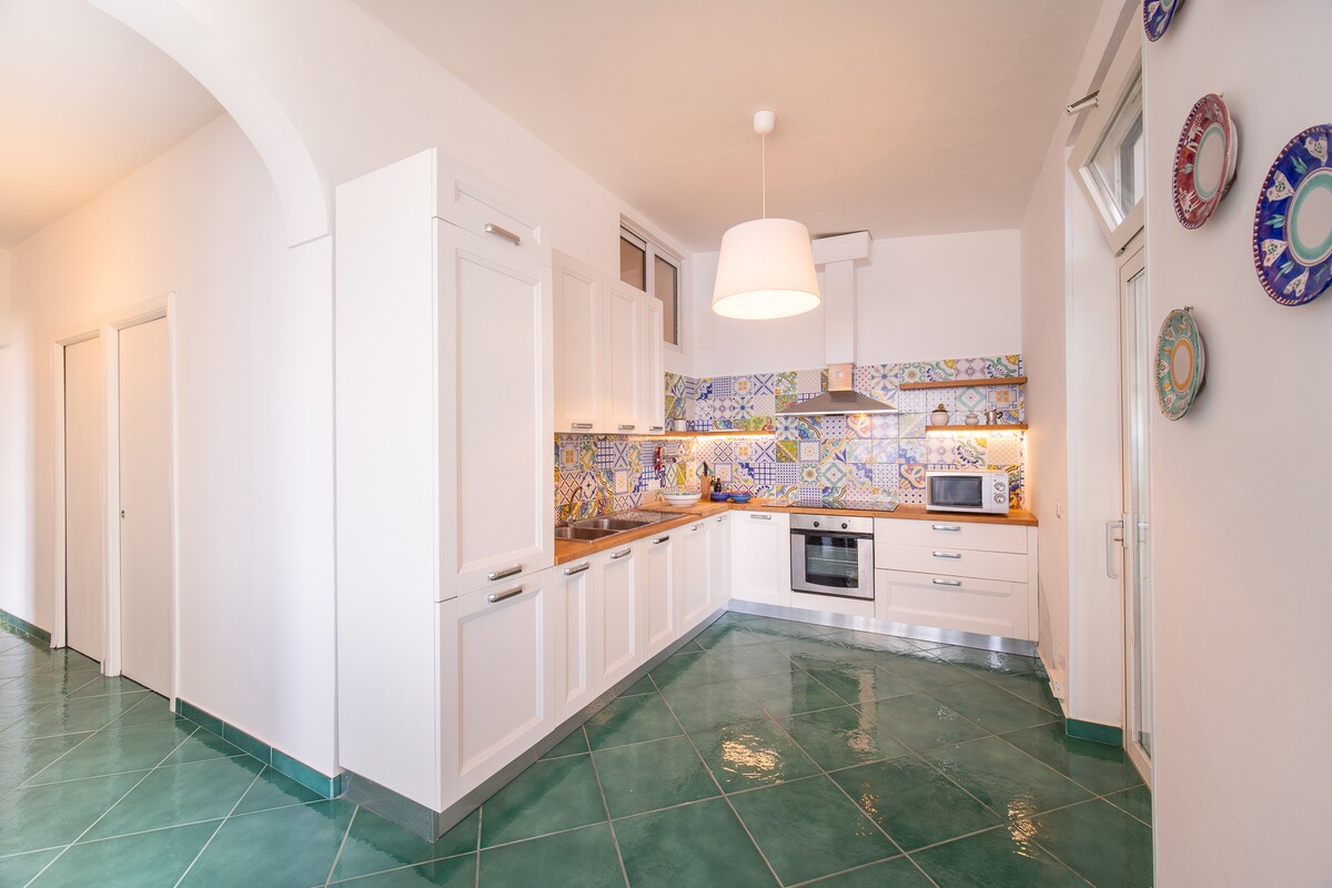 Elegant i ampli apartament d'estil típic mediterrani amb una gran terrassa, envoltat de vegetació, des de la qual es pot admirar la bella badia de Positano. Ideal per a aquells que vulguin passar unes vacances inoblidables de relax i allunyats del bullici de la ciutat, però a pocs passos de la vida activa del centre. Un petit racó del paradís al teu abast.