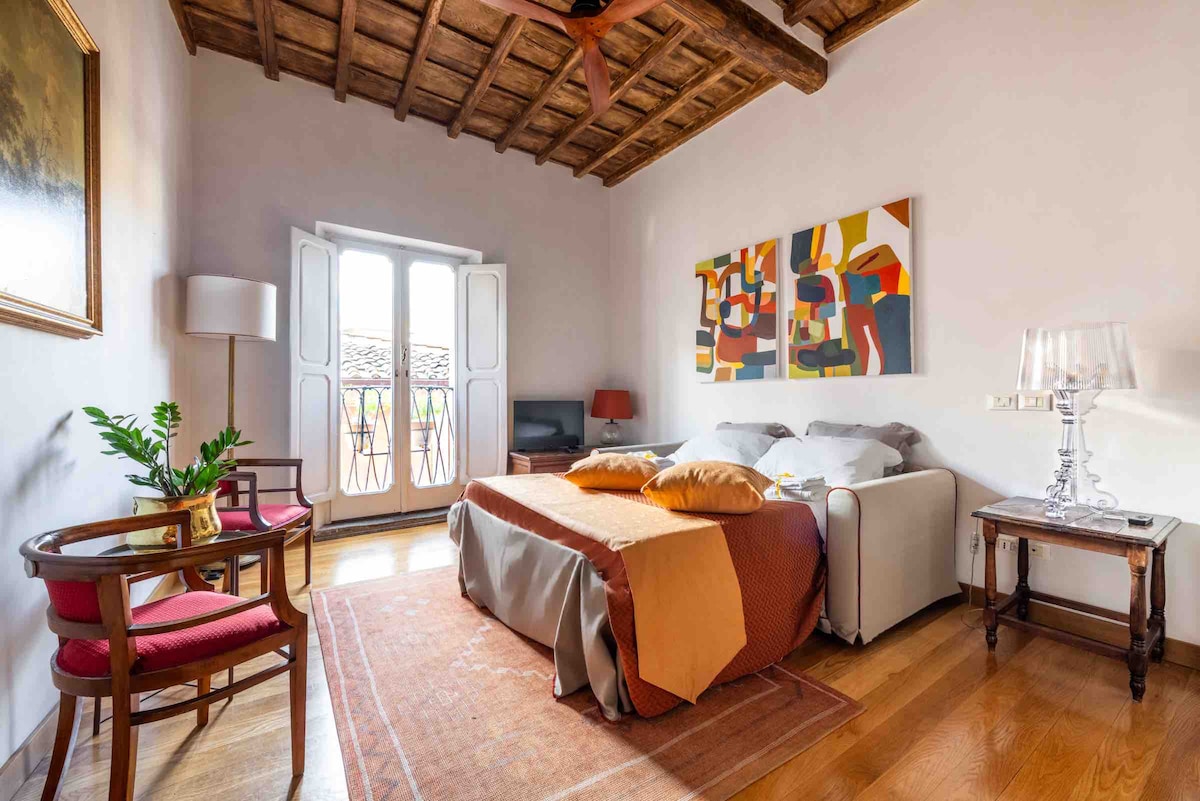 Pis lluminós i ampli al cor del centre històric de Roma. Situat al tercer pis (amb ascensor) d'un edifici antic i senyorial a poca distància a peu de la plaça Navona i del castell S. Angelo i de les principals atraccions turístiques de la ciutat. La ubicació òptima fa que aquest apartament sigui adequat per passejar pels carrers més bonics del centre històric. Els carrers plens de bars, restaurants i botigues típiques asseguraran una experiència inoblidable!
