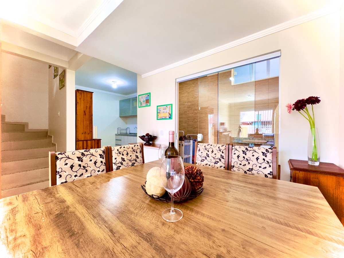 Casa térrea, até 3 vagas de garagem ar-condicionado em todos os quartos lareira e churrasqueira à carvão 3 quartos amplos (suíte + 2 quartos) sofá-cama+PlayS4 1 colchão solteiro 2 berços 2 banheiros (social+suíte) banheira kids secador de cabelo ferro de passar cozinha completa lavanderia (Lava e Seca+varais) filtro de água gelada guarda-sol+cadeiras de praia RUA RESIDENCIAL E TRANQUILA CHECK-IN com cofre MERCADO (com padaria) na rua fornecemos sabonetes, toalhas de banho e roupa de cama