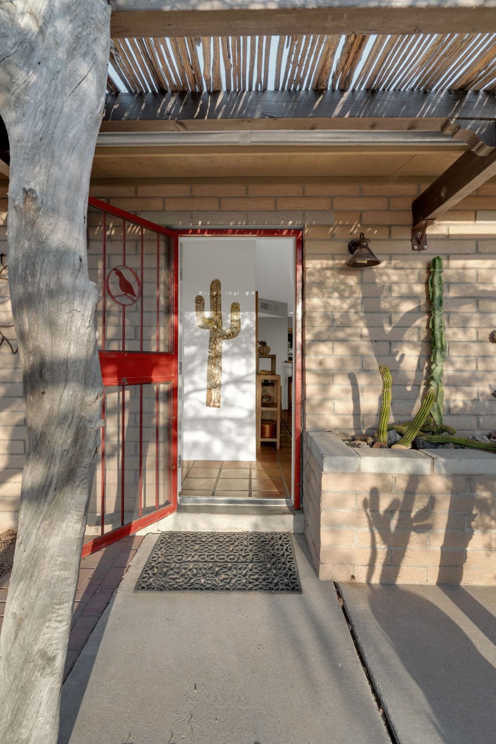 Aquesta casita per a hostes bellament remodelada està situada al centre de Tucson. A poca distància a peu del centre comercial Tucson, el circuit, molts restaurants i parcs. La comunitat tancada té una piscina comunitària/spa i gossos. El pati interior té moltes plantes i belles roques de quars grans. Mentre entres a l'estudi d'entrada privada, veuràs el terra de taula de rajoles, un llit queen, un televisor corbat de 55 polzades, un aparador i un petit escriptori. Aquesta habitació també té una cuina petita amb taulell de quars i un bany privat de luxe.