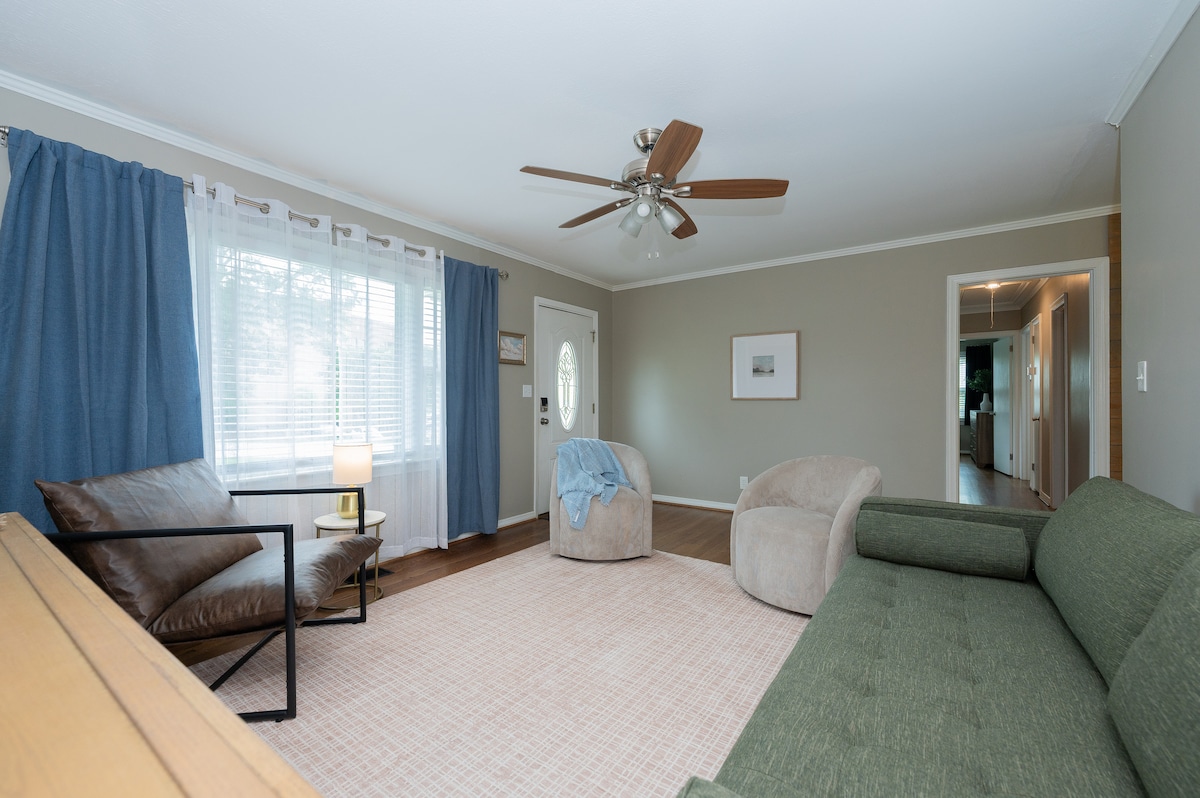 Casa rural privada acollidora en una zona residencial tranquil·la, a prop del riu Saluda. Relaxa't amb el teu propi pati tancat, sense escales per accedir-hi i aparcament privat. Gaudeix d'una escapada llarga de cap de setmana, d'un viatge de feina tranquil o vés a la ciutat per assistir a un esdeveniment! La cuina petita té forn, pica, microones, nevera/congelador, cafetera, torradora i tots els plats, paelles i estris que necessitaràs! Hi ha disponible un pack-n-play, llençols, tovalloles i productes de paper inclosos. Televisor intel·ligent, wifi, aparcament. No es permeten mascotes, fumar, vapejar, reunions ni esdeveniments.