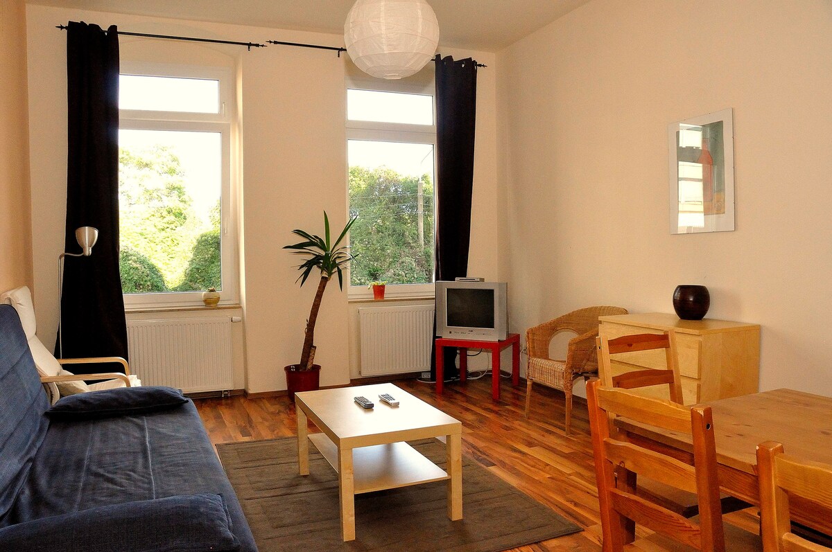Preciós pis amb molt bones connexions i compres. Des d'aquí ets ràpid a la ciutat, però igual de ràpid a la reserva paisatgística. Diverteix-te aquí a Dresden :). Ps. Normalment no llogem per a hostes comercials. Només TV Netflix :)