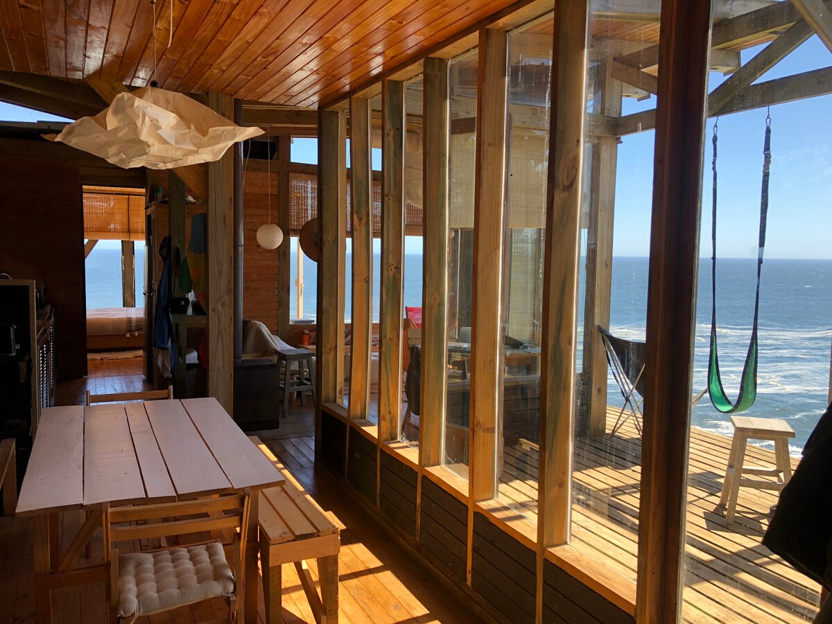 Descobreix la costa del Maule com mai abans. Vista a l'oceà amb una façana totalment vidriada de 14 metres de llarg amb finestrals del terra al sostre que fan que la vista sigui un espectacle de 24 hores. En cas que necessitis més dormir, només has de baixar les cortines opaques i estaràs bé. El loft disposa d'1 llit doble, sofà llit, terrassa protegida al vent sud, internet Starlink, cuina totalment equipada i un elegant bany de pedra i fusta. A 10 km al sud de Curanipe, a 300 metres de la carretera principal i a uns passos de la platja.