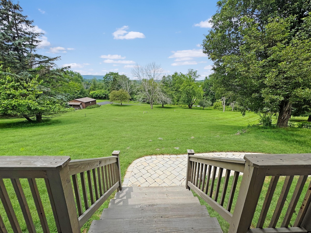 Quiet property,almost 8 acres, of beautiful wooded property . Set back from the road. Many trails, wineries and breweries nearby. Legoland is 20 minutes away and many antique shops within 30 minutes or so. We live in the other house on the property, so we are accessible. You can take a stroll on the path by the stream or sit on the spacious 35 x 10 foot deck and enjoy the natural setting of the property. Fire pit is now available. Enjoy the night air and gaze at the stars.