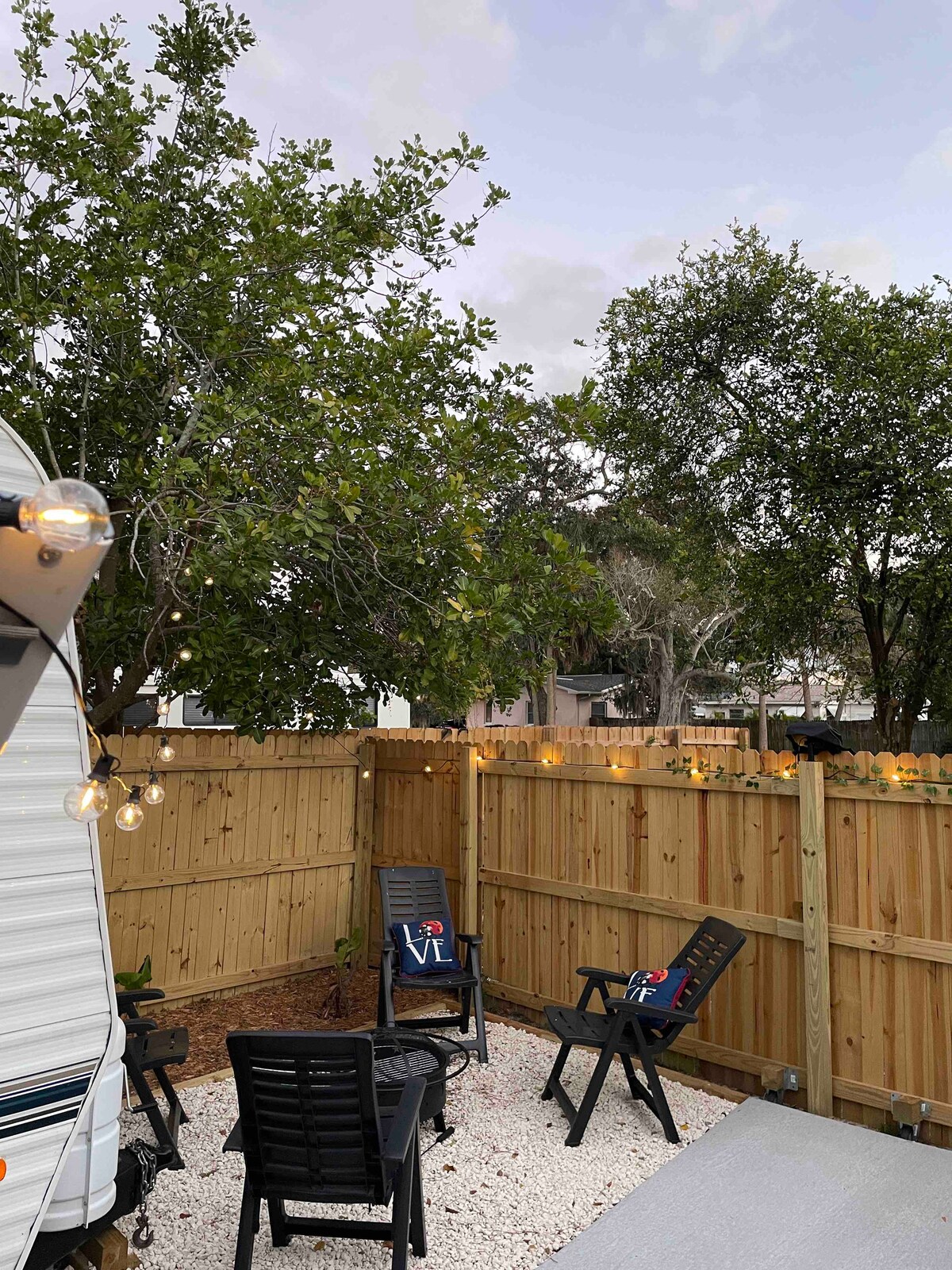 Fes que sigui senzill en aquest lloc tranquil i cèntric que es troba a 2 blocs de l'aigua, a només 2 blocs de l'estadi Blue Jay. 6 milles a Dunedin. La nostra autocaravana Luxury 2020 és de primera línia i té privacitat que està darrere de la nostra porta tancada amb tota la unitat tancada per a la màxima privacitat i també és ideal per relaxar-te i gaudir de l'aire lliure. La unitat té el seu propi router d'internet amb velocitats ràpides per a una acció d'internet imparable. Tenim bolígraf i silla alta disponibles per a nens a petició