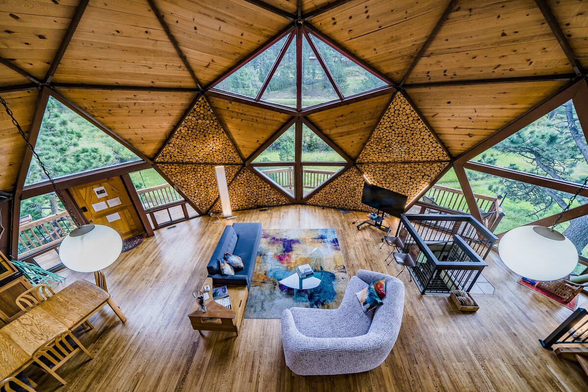 Per primera vegada, pots allotjar-te al llegendari Estes Park Dome, també conegut com el Snow Globe, el Golf Ball i fins i tot l'Estrella de la Mort (22-ZONE3284). La nostra cúpula geodèsica captura la imaginació tan bon punt la posis als ulls. + Lloguer ecològic amb carregador EV, bomba de calor i molt més + Coberta amb seients al pati + Mins a Hermit Park i Lion 's Gulch Trail + Cuina totalment equipada, jocs, estèreo, televisor, estores, estores de ioga, wifi ràpid Un refugi extravagant a 6 o 10 minuts del centre d'Estes. Puja els 3d plànols!