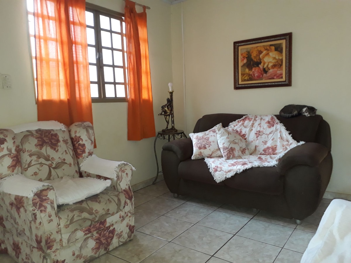 Casa amb garatge per a 2 cotxes o 1 camió lateral, porta privada tancada i electrònica, parets altes amb tanca elèctrica, molt segura, habitació núm. 1 amb un llit doble, dormitori núm. 2 amb llits individuals, armari, ventiladors de sostre a la sala d'estar i als dos dormitoris, bany amb caixa, cuina amb estris, nevera, fogons, microones, taula, bugaderia amb rentadora, sala d'estar amb televisor. Roba de llit i de bany, sabó i rotlles de paper higiènic disponibles (1 unitat de cada)