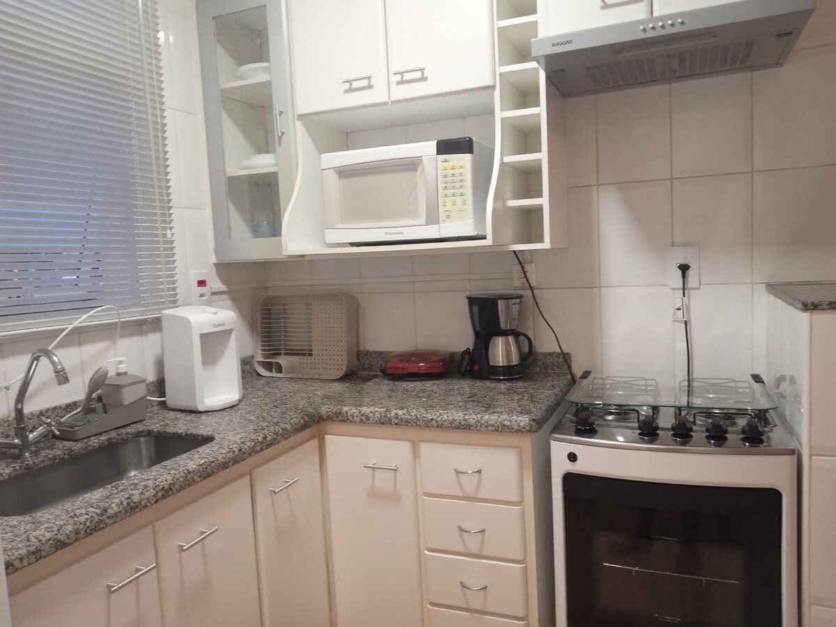 Pis molt acollidor, ben ventilat i lluminós. Excel·lent ubicació, a només 2 minuts d'un supermercat, un centre de convencions, un llac, bars i restaurants. Al costat del cinema Pirassununga. Equipat per rebre fins a 2 persones còmodament. El condomini té una plaça d'aparcament al garatge i a la piscina. Perfecte per a aquells que busquen tranquil·litat.