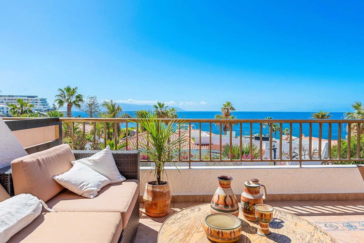 Preciós estudi a Playa Paraíso amb una vista increïble al mar cap a l'illa La Gomera. Completament equipat i renovat. Piscina i accés a la platja. Hi ha molts bars, restaurants i supermercats. El nou Hard Rock Hotel just al davant. ATENCIÓ: Del 16 de juny de 2025 fins a finals d'any, la piscina estarà TANCADA per obres de renovació.