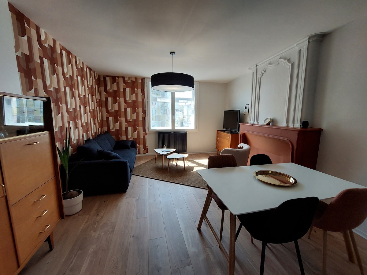 Gaudeix d'una estada fantàstica en un pis elegant totalment renovat a principis del 2023, just al centre de la ciutat de Fontenay- Le- Comte, bonica ciutat renaixentista. A pocs metres del mercat, restaurants i botigues, el lloc ideal per descobrir els carrers i edificis antics de Fontenay, i tota la regió ! El pis està equipat per fer que la teva estada sigui el més còmoda possible i que no et perdis res !