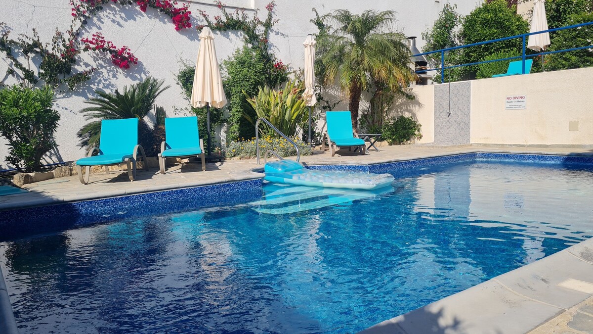Entra en la serenitat! Escapa't a un refugi assolellat en un turó tranquil. Relaxa't al costat de la piscina, pren el sol i gaudeix de les impressionants vistes al mar i a les postes de sol daurades. A només 15 minuts en cotxe de Pafos, els nostres dos encantadors estudis són la base perfecta per explorar. Les platges, els camins naturals, el port, la llacuna blava i el nucli antic de Pafos es troben a 15-30 minuts en cotxe. Wifi gratuït, aparcament, una plaça del poble amb tavernes i un bar de vins, a només 4 minuts en cotxe. El cotxe és imprescindible. Piscina oberta tot l'any (no climatitzada).