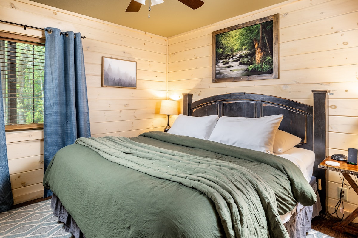 (Escaneja el codi QR per veure un vídeo de The We Cabin) Et donem la benvinguda a The We Cabin, una cabana d'estudi personalitzada dissenyada pensant en parelles. Situat al cor de les muntanyes Smoky Mountains, aquest refugi íntim ofereix comoditats modernes en una ubicació cèntrica i cèntrica. Evita l'estrès de les carreteres de muntanya empinades i gaudeix d'un accés fàcil a les infinites atraccions dels Smokies. Pigeon Forge està a només 3 milles de distància, Gatlinburg està a només 10,5 milles i el Parc Nacional Smoky Mountain està a només 10 milles de la porta. N