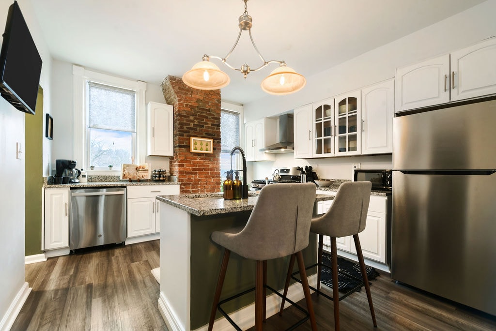 Et donem la benvinguda a Lawrenceville, un dels barris més emocionants i transitables de Pittsburgh! Aquest allotjament de tres pisos, recentment renovat, combina comoditat, estil i diversió, i és ideal per a grups, escapades de cap de setmana o estades més llargues. Gaudeix d'una sala d'estar lluminosa, una cuina totalment equipada, una suite amb llit «king» i un loft de pel·lícules i jocs a la planta superior que fa que aquest allotjament sigui realment únic. Estaràs a pocs minuts de restaurants fantàstics, botigues, cafeteries, el Strip District, el centre de la ciutat i els estadis de Pittsburgh.