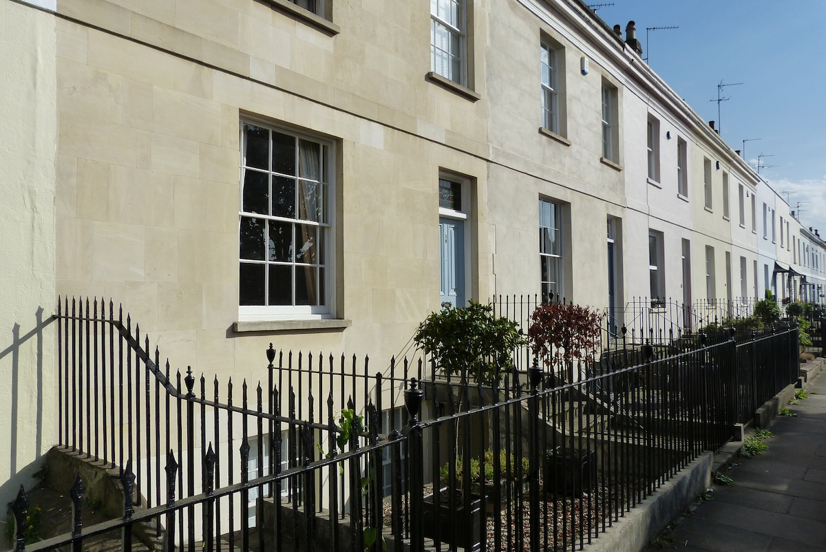 Té una ubicació ideal a poca distància a peu del centre de la ciutat de Cheltenham i del hipòdrom de Cheltenham. Aquest apartament, recentment reformat, ofereix una sala d'estar privada i còmoda dins d'una gran casa regència. A vegades faig de coamfitrió amb el meu fill Patrick, el meu marit John i la meva filla Rachel. Considerarem fins a 4 hostes, ja que podem canviar el sofà per dos llits individuals. Posa't en contacte amb nosaltres per parlar-ne abans de sol·licitar la reserva.