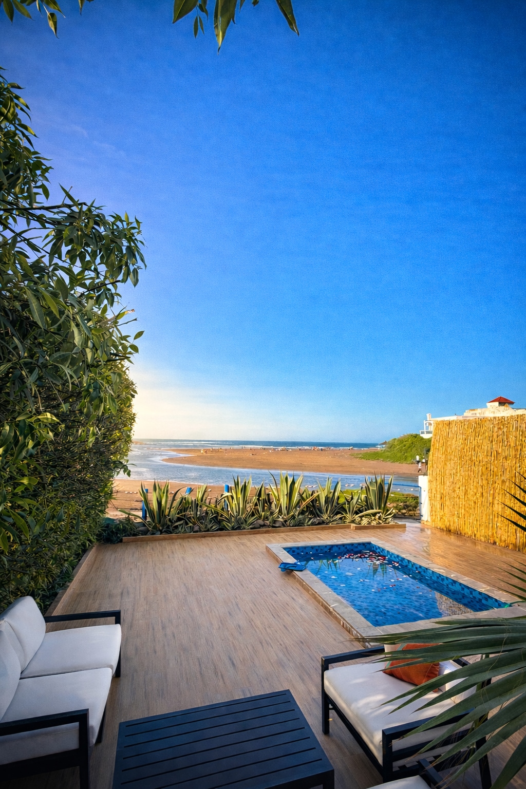 Jolie petite villa bord de mer – Maison lumineuse à Mohammedia, face à la plage Offrez-vous une parenthèse de calme dans cette jolie villa à l’esprit minimaliste et au charme naturel. Un lieu idéal pour ralentir, respirer et profiter de l’essentiel, au rythme des vagues. La maison bénéficie d’un accès direct à la plage de Manesmann et se situe dans un lotissement calme et sécurisé, à seulement 3 minutes en voiture du centre de Mohammedia.