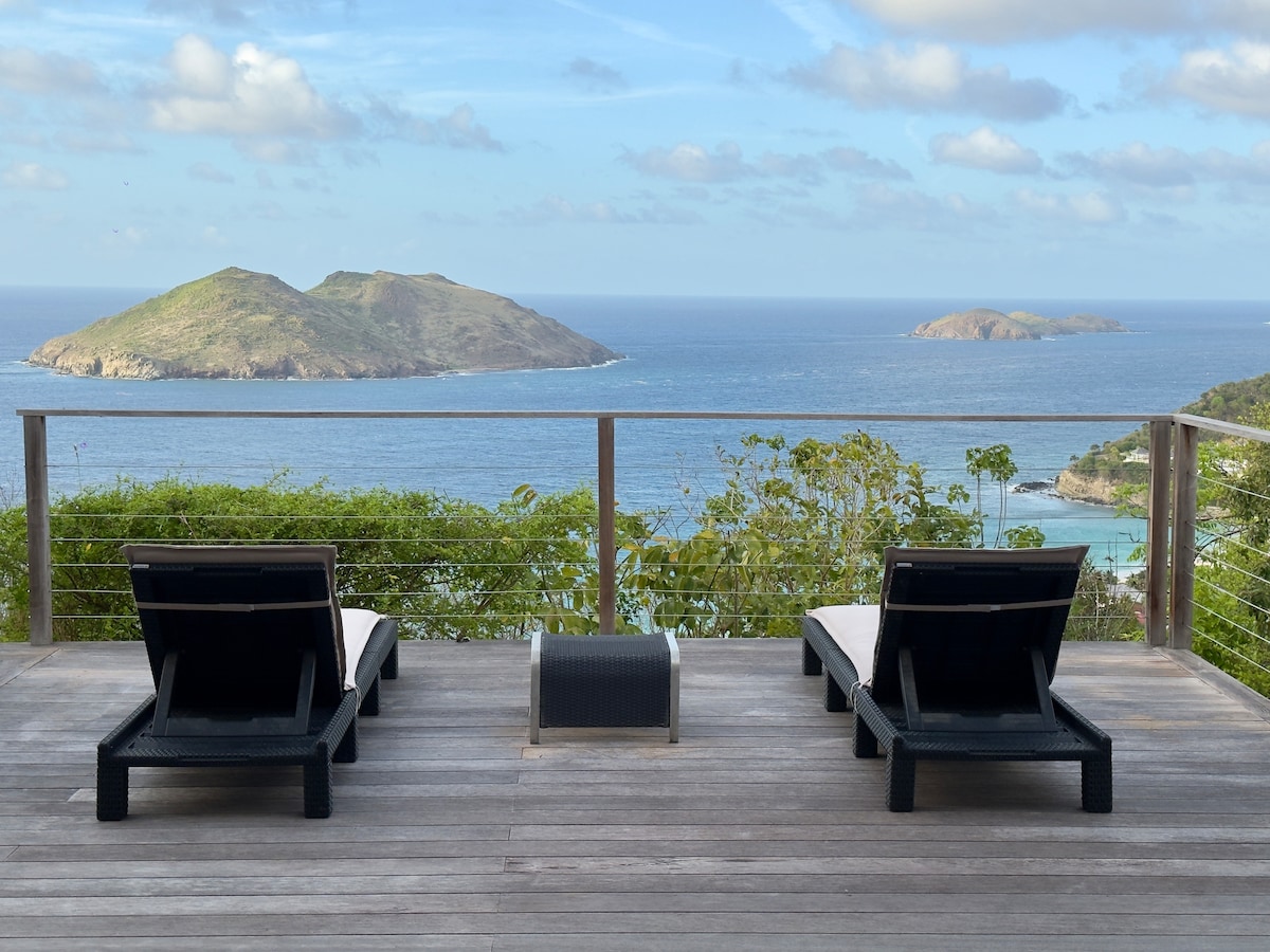 RIDE és una VIL·LA del 2017 situada al cim del turó d'anse des cayes que ofereix una vista preciosa del mar. A 5 minuts en cotxe de la platja , gustavia (ciutat principal) i una deliciosa pastisseria. Ofereix tranquil·litat i privacitat mentre et quedes a prop de tot. La vil·la pot allotjar 4 PERSONES en 2 DORMITORIS, cadascun amb el seu propi bany privat de fusta enorme. La vil·la també és accessible per a persones amb MOBILITAT REDUÏDA gràcies al seu accés d'una sola planta.