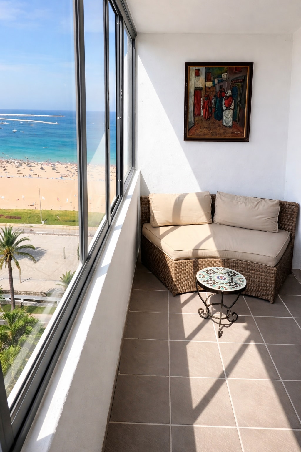 Et donem la benvinguda a la nostra joia del port esportiu de Tanger. Submergeix-te en el luxe mediterrani al nostre elegant apartament amb vistes panoràmiques al mar des de la finestra. El nostre refugi, que ofereix una accessibilitat inigualable i a pocs passos de la famosa Corniche Malabata, el nostre refugi combina l'elegància moderna i l'encant tradicional. Tant si busques una escapada romàntica com un refugi relaxant, el nostre pis ofereix l'escenari perfecte per gaudir d'una experiència autèntica a Tanger.