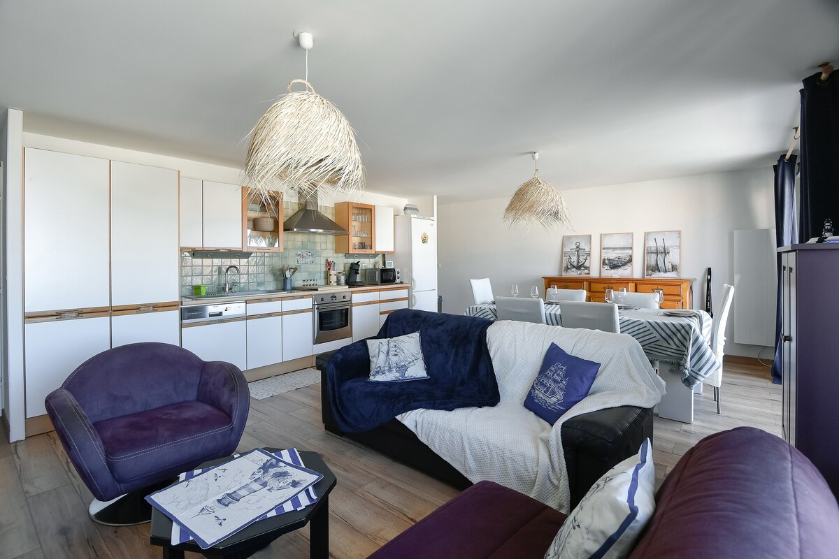 Desperta't davant del mar. Obre les persianes... el so de les ones et dona la benvinguda. Et donem la benvinguda a la nostra caseta amb vista al mar, Acollidor estudi per a 2 persones, amb 3 estrelles i totalment renovat. Gaudeix del cafè al balcó amb vistes a l'oceà. Respira… aquí vivim amb els peus a l'aigua. Entre Hardelot i Le Touquet, a Sainte-Cécile: accés directe a la platja, botigues a 5 minuts, senderisme i activitats aquàtiques. Hi ha un lloc per fer surf de rem i kitesurf a l'altra banda del carrer. Tot a peu o en bicicleta (lloguer de bicicletes). Wifi i aparcament privat.
