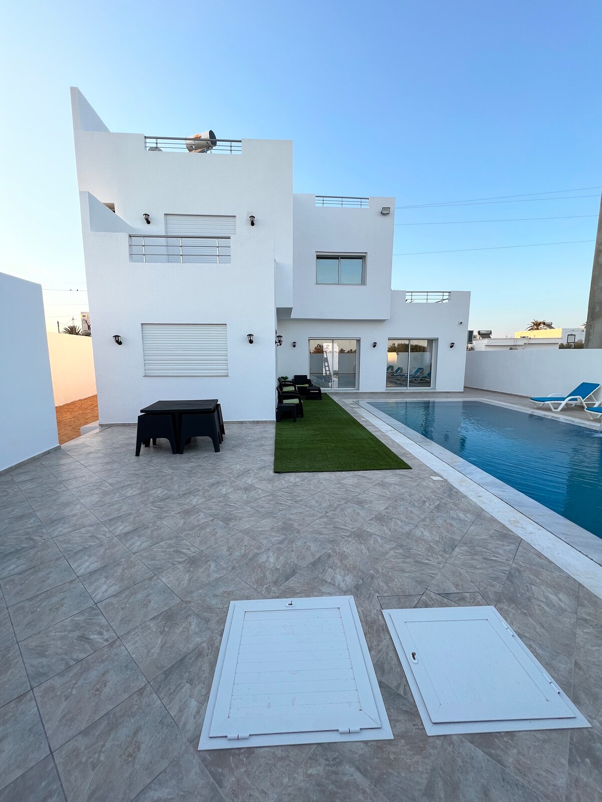 🌴 Bienvenue à Villa Eden – Votre parenthèse de tranquillité sous le soleil de Djerba ✨ Les espaces • 190 m² de confort moderne et raffiné • 3 grandes suites avec literie haut de gamme • 3 salles de bain, 🌿 Le jardin et la piscine • Piscine privée sécurisée • Terrasse avec salon extérieur et transats • Espace barbecue pour vos repas conviviaux 🏡 Équipements • Cuisine entièrement équipée (four, micro-ondes) • Climatisation dans toutes les pièces • Wifi haut débit • Machine à laver