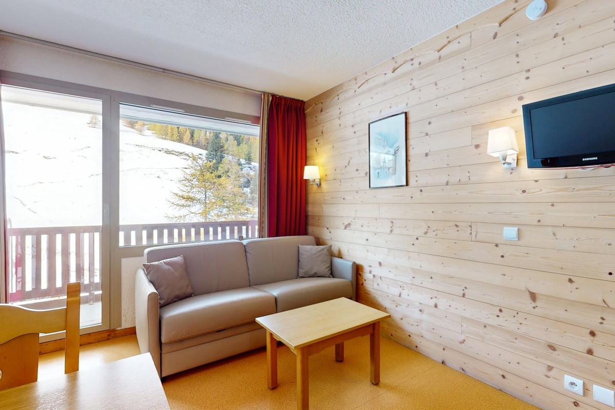 La Plagne: Estudi acollidor amb esquís als peus