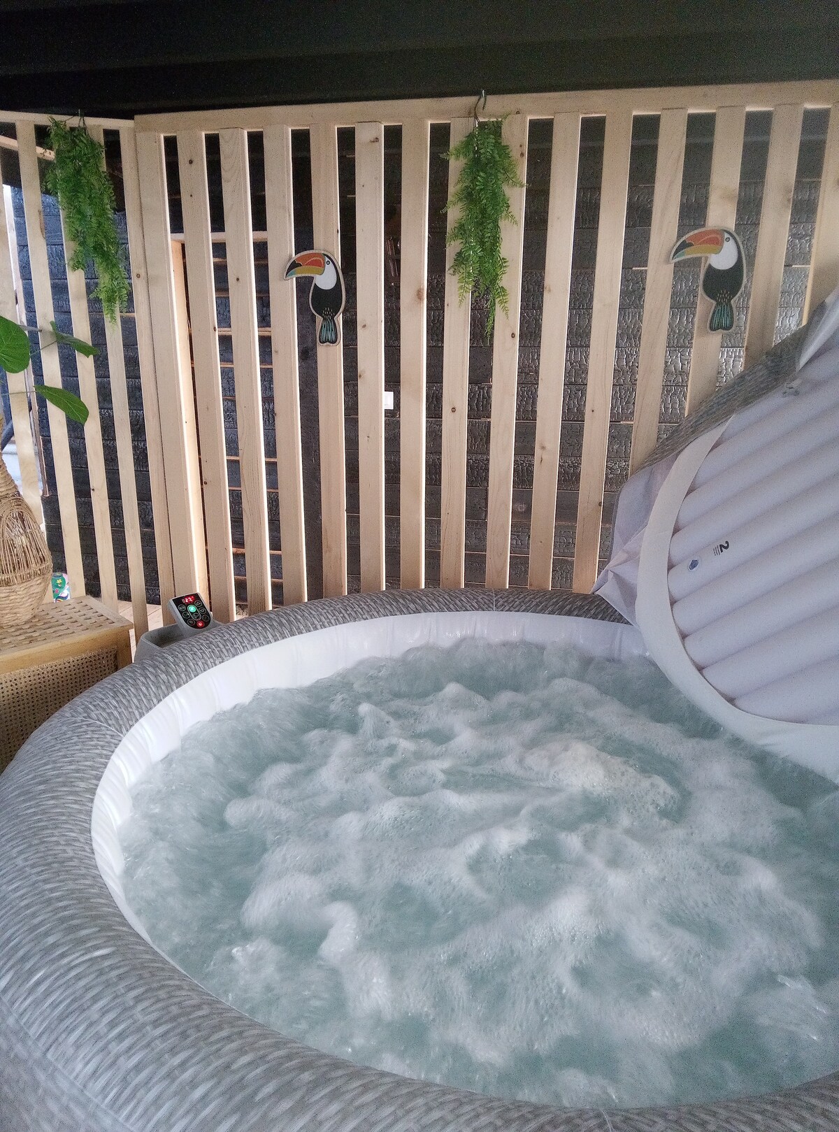 Caseta situada al cor de les muntanyes Haut Jura, a 1100 m. Inmersió total en la natura amb una vista impressionant de la vall i el rierol de sota. Moltes passejades a prop: muntanyes i cascades. Amb una ubicació ideal al camp i a prop del poble de La Pesse, amb nombroses botigues (restaurants, forns, delicatessen, formatgeria, supermercat). Totalment equipat, aïllat i climatitzat: relaxa't en pau i tranquil·litat en totes les estacions :) Vine a relaxar-te sota les estrelles al bany nòrdic calent