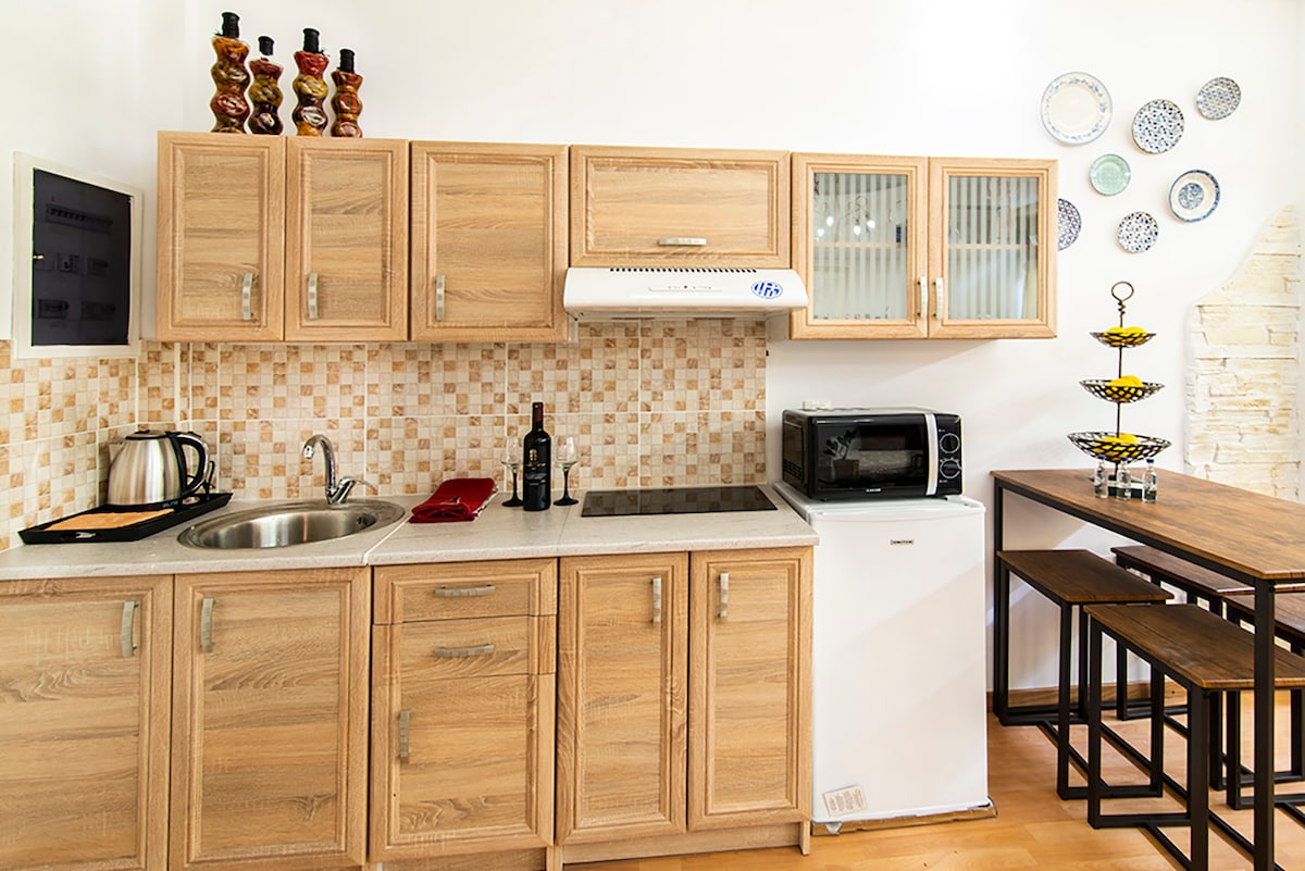 Maisonette tradicional, autèntica i vintage, al costat de la nostra botiga de moda, convida a gaudir d'una estada inolvidable a Plaka, Atenes. Tot, des de parets de maó vistes, carpinteria intrincada, mobles vintage, banys de disseny pastel blau i beige, decoracions rares i una escala d'espiral, us trascenderà totalment a la glòria atenenca passada. A prop del supermercat, botigues tradicionals, bars i restaurants. A 1 minut de la catedral. A 5 minuts de l'Acròpolis. A 2 minuts de l'estació de metro Monastiraki.
