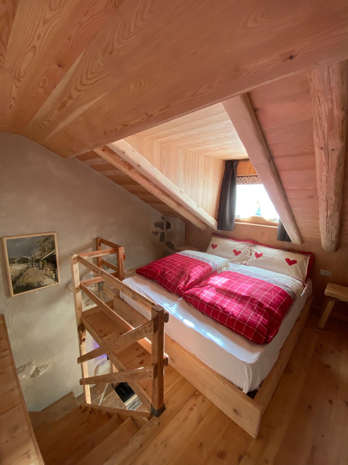 La propietat és una petita granja ecològica aïllada al bosc. La carretera està plena de sots. S'hi arriba amb cotxe (no cotxes baixos), a peu o amb bicicleta. La casa consta d'un dormitori doble amb grans finestres de vidre que donen a la vall, un dormitori doble preparat per a l'apiteràpia amb dues arnes (a l'estiu) i un dormitori amb llit francès. A la planta baixa hi ha una cuina agradable i un menjador relaxant. Pots llogar 2 bicicletes elèctriques per una petita quantitat i oblidar-te del cotxe! A l'exterior tens un jacuzzi climatitzat que pots fer servir en qualsevol moment.