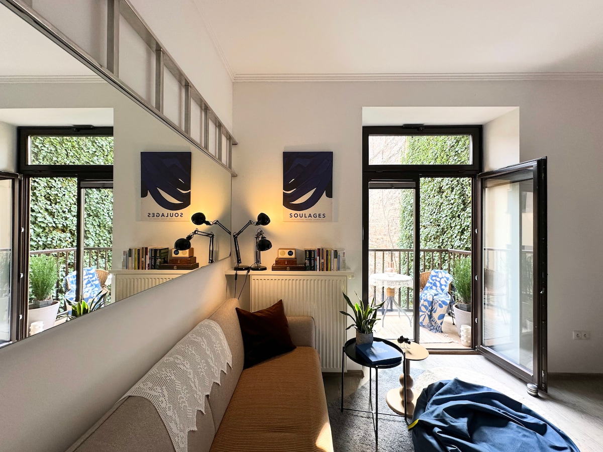 Relaxa't en un antic sofà cabriole en una zona d'estar ben il·luminada amb catifes de pell d'ovelles i mobles vintage. Els detalls reciclats i els tocs minimalistes donen un ambient eclèctic a aquest espai remodelat. El pis està situat en una casa de lloguer del segle XIX, al districte del casc antic, entre la plaça principal i l'antiga zona del barri jueu. Passeja pels carrers d'aspecte especial plens de botigues d'antiguitats extravagants, galeries d'art intrigants i cafeteries shabby-chic.