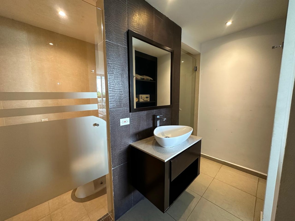 Nuestro apartamento full equipado y Renovado es más cómodo que los hoteles cercanos. Cocina equipada con implementos basicos para cocinar y nevera. Wifi, Smart TV y cable TV. Podrás disfrutar de una excelente vista, en un lugar cómodo y tranquilo, así como: • Piscina acceso solo a la zona de toboganes de agua. La laguna artificial de agua salada es solo para uso de propietarios y/o huespedes con estadias de 30 dias o mas. • Playa privada. Canchas deportivas