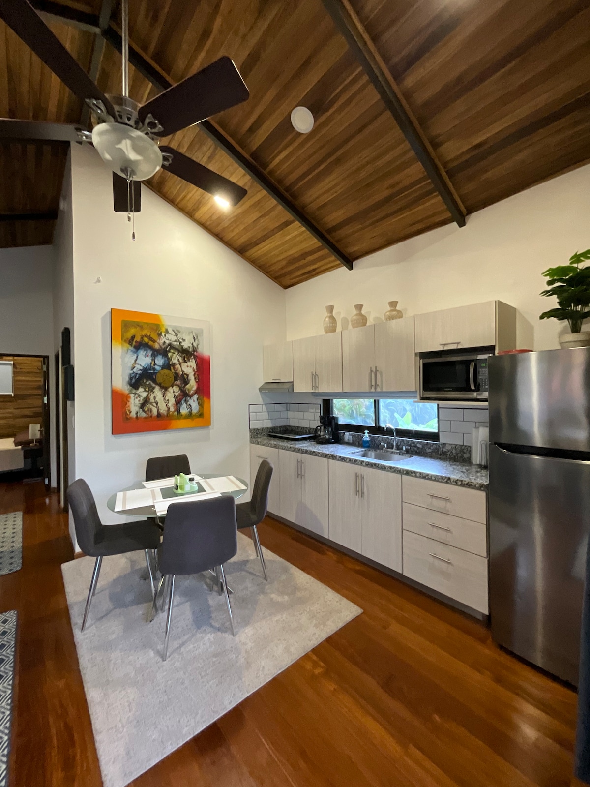 Relaxa't a Casa Ocelote, un refugi tranquil immers en la natura a prop del surf de classe mundial i situat entre dues vibrants ciutats de platja, Sámara i Nosara. Gaudeix d'una àmplia terrassa amb vistes al dosel de la selva, una cuina totalment equipada (amb barbacoa) i dormitoris espaiosos amb aire condicionat i televisors intel·ligents. Refresca't a la dutxa a l'aire lliure, vigila la fauna salvatge o surt i explora. Situada al poble d'Esterones, Casa Ocelote es troba a minuts de la platja de Buena Vista i del magnífic refugi de surf, Barrigona.