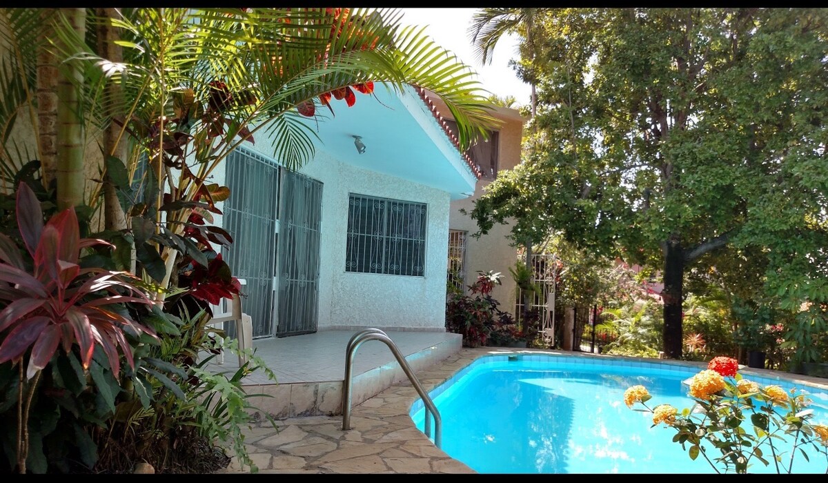 Casa Betty is a 5min walk to beautiful Playa Costambar. Our beach has restaurants with from an elegant meal to a delicious snack. There are 2 small supermarkets in our gated community with a good selection of foods and products. Los Mangos golf course and Clubhouse is within walking distance. Costambar Taxi can take you to all attractions. note - the upstairs room is only being used for storage . You are welcome to enjoy any of the books on the shelves at the top of the stairs. .