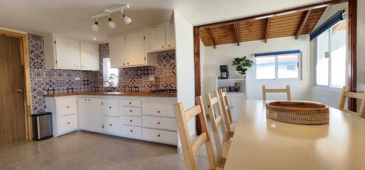 Depa. modern, molt net i còmode. Totalment equipat A 1 minut a peu de Playa conalep (Entre playa bella y playa pacifica) per caminar, córrer, fer surf o surf de rem, relaxar-se, prendre el sol o veure una posta de sol romàntica. 5 min. - Macroplaza (walmart, cinépolis, bars i descans)/costco 15 min. - Centre d'Ens. i la Riviera 30 min. - Vell recorregut enològic/Vall de Guadalupe 30 min. - Bufadora/Cañadas 10 min. Turisme mèdic: centre mèdic d'Alton Level amb sala d'operació.