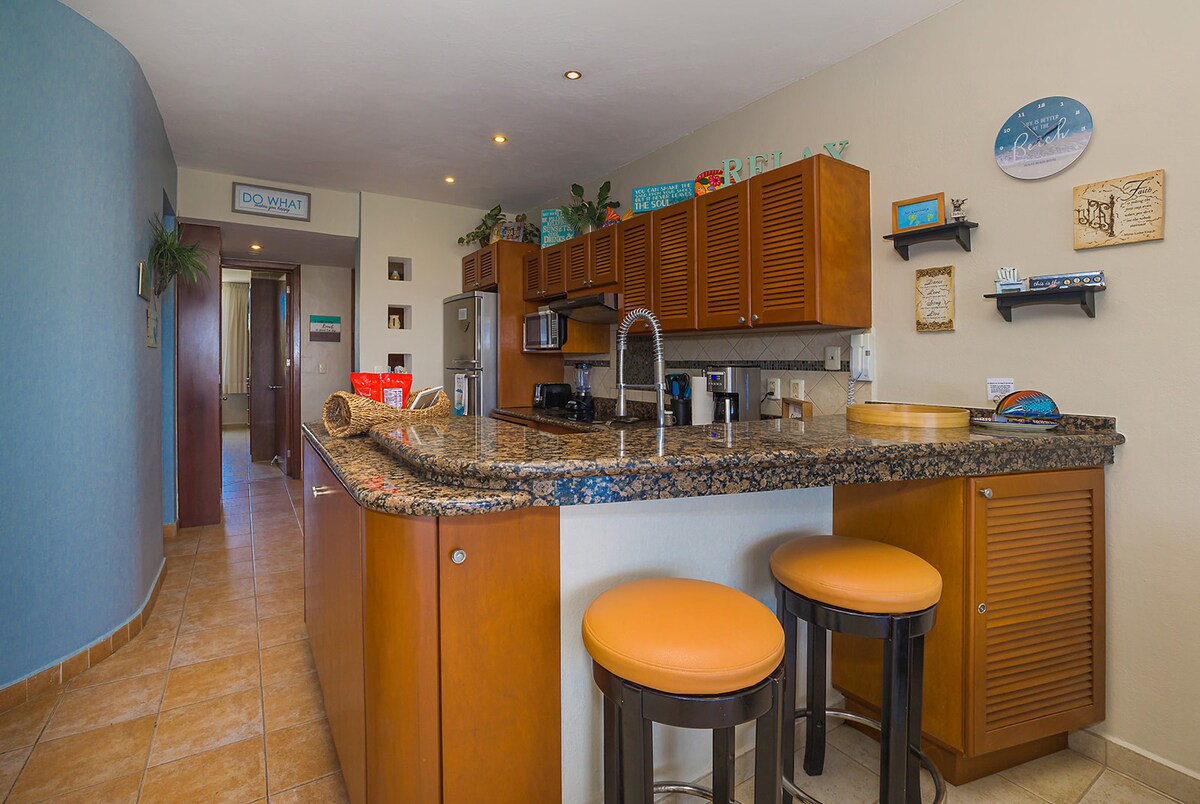 Aquest apartament de Cozumel bellament moblat és perfecte per a les teves vacances a la platja. Vistes increïbles des del balcó i totes les habitacions de l'apartament. 3 dormitoris, 2 banys complets, cuina totalment equipada i tot l'equip de busseig, tovalloles i subministraments que necessitaràs per passar unes vacances fantàstiques. Conserge personal per ajudar-te durant l'estada. Pots gaudir del dia a la platja/mar, que està a només uns passos de la porta principal. A la propietat hi ha una bonica piscina per al teu ús amb salons de platja relaxants.