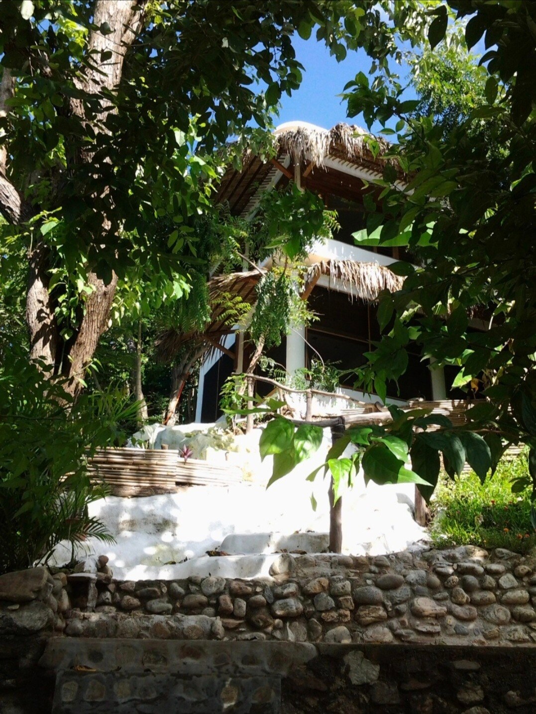 La Cabaña Azul és una palapa tradicional, rústica, teulada de palmeres, a 55 metres de la platja, vista al mar, wifi, hamaques, cuina equipada, nevera, aigua purificada i graella. Envoltat de selva, els sons que sents són els ocells i el murmur del mar. Al dormitori (protegit amb mosquitera) tens un llit doble i un futon individual (ferm), ventilador i caixa forta. A la sala d'estar hi ha més un llit queen size. Disposa d'un bany ecològic privat al jardí a uns passos de distància.