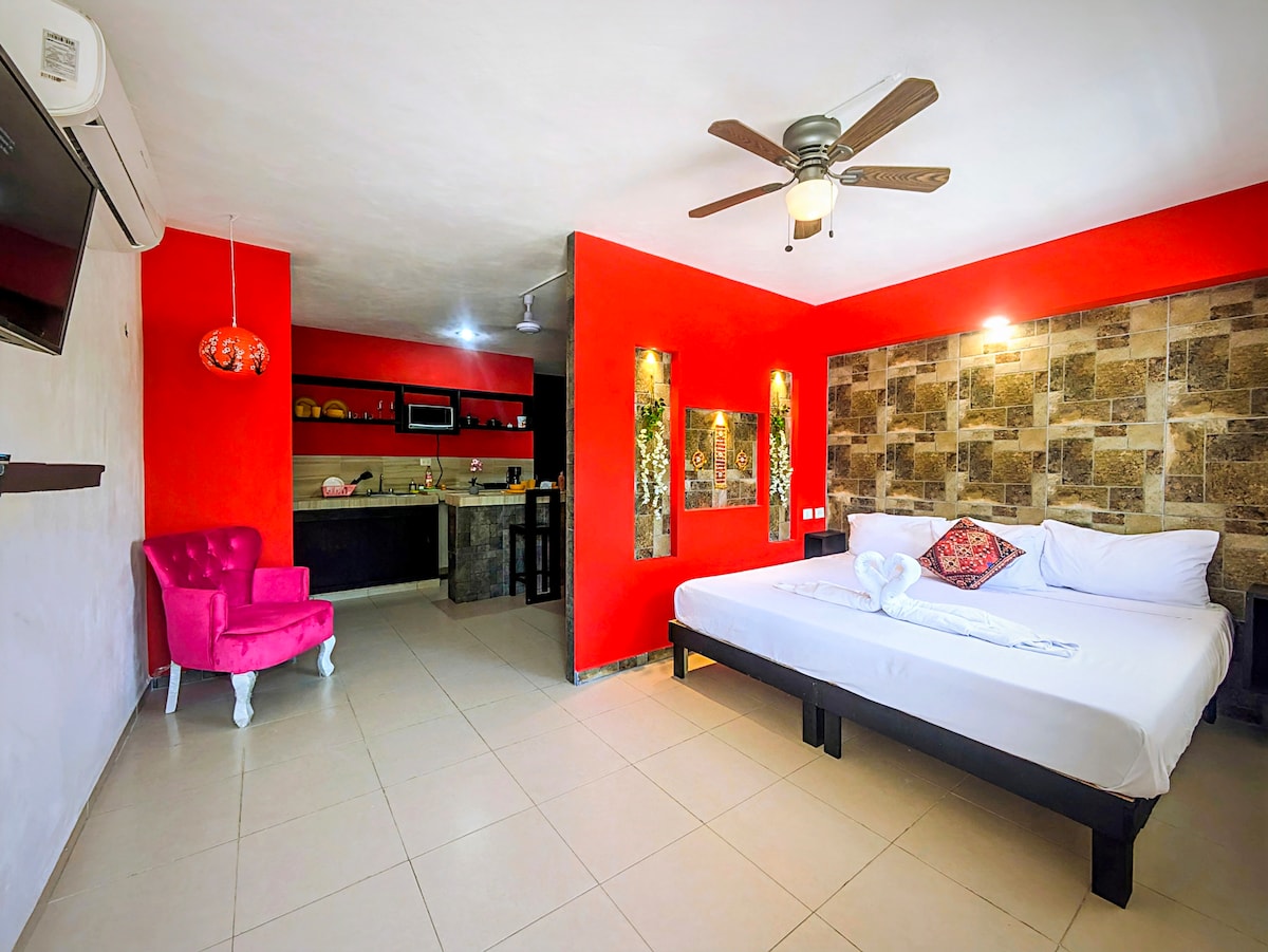 Relaxa't en aquesta escapada única i tranquil·la. Et convidem a descobrir Cenote Studio, un espai exclusiu amb cuina compacta, bany privat, rentadora/assecadora, televisor i connexió de fibra òptica d'alta velocitat. Gaudeix d'un petit jardí privat per relaxar-te. A només 50 metres trobaràs un cenote natural i una piscina infinita. Situat en un entorn tranquil, a 15 minuts en bicicleta de la Cinquena Avinguda. Transport gratuït una vegada al dia al centre, electricitat inclosa. El teu refugi ideal!
