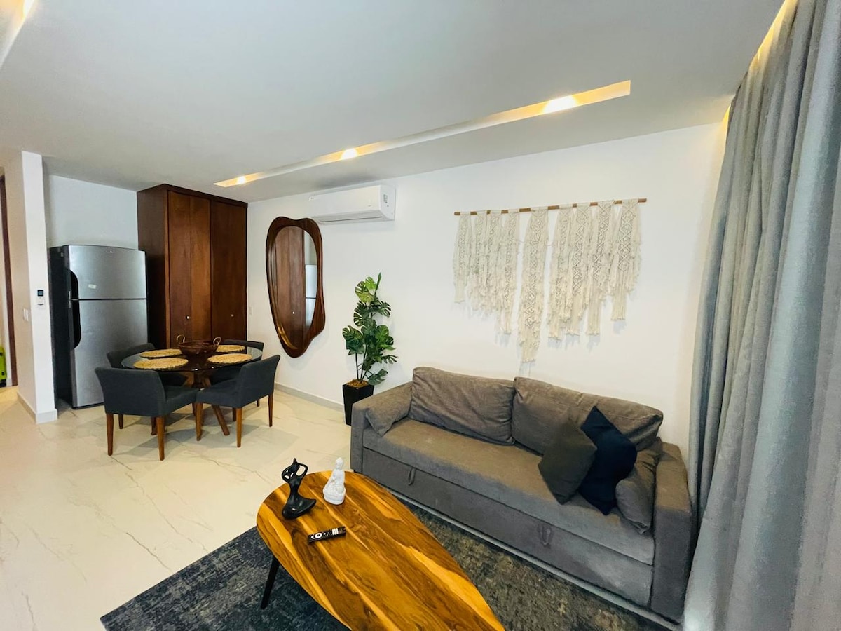 LUXURY condominium owned and operated by Victor, your host. Enjoy a modern and very well located complex in Playa del Carmen. We propose you a 1-bedroom apartment rental with luxury finishes, located in the center of the city close to everything you need. Located on Avenida 20 between Calle 14th and 16th. This well appointed 1 bedroom apartment with roof top pool and well equipped Gym is just 2 blocks from great restaurants and the famous 5th avenue.