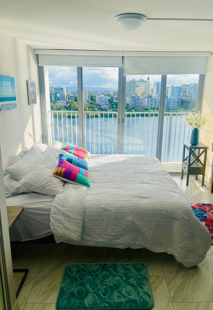 Et donem la benvinguda als nostres allotjaments acollidors. Detalls a continuació. Posa't en contacte amb nosaltres per fer-te qualsevol consulta. Aquesta és la nostra àmplia suite amb llit king size i cuina totalment equipada. Al costat del Passeig Caribe i el Caribe Hilton, sopa en restaurants propers a només 5 minuts a peu. Entre el vell San Juan i el comtat, gaudeix del centre de l'acció. Descobreix platges precioses i una llacuna propera. Generador de seguretat i cisterna per a emergències. Relaxa't o diverteix-te amb la teva elecció. Gaudeix de la piscina, la banyera d'hidromassatge i la felicitat amb vistes al mar.