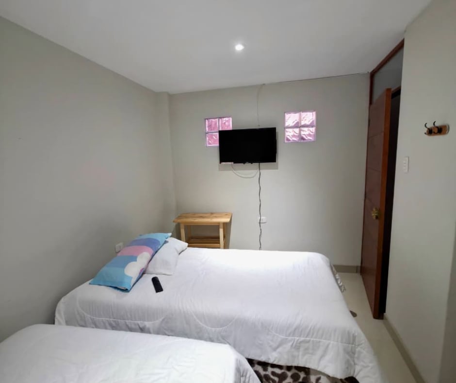 Acollidora habitació a l'Hotel Cajamarca Bonita, gaudeix d'una estada còmoda i relaxant a la nostra acollidora habitació, ideal per als viatgers que busquen descansar després d'explorar Cajamarca. Situat a només 10 minuts de la Plaça d'Armes a peu, tindràs fàcil accés als principals llocs turístics, restaurants i botigues, sense sacrificar la tranquil·litat. L'habitació disposa de bany privat, aigua calenta, wifi, televisió amb Netflix i HBO, entre altres.