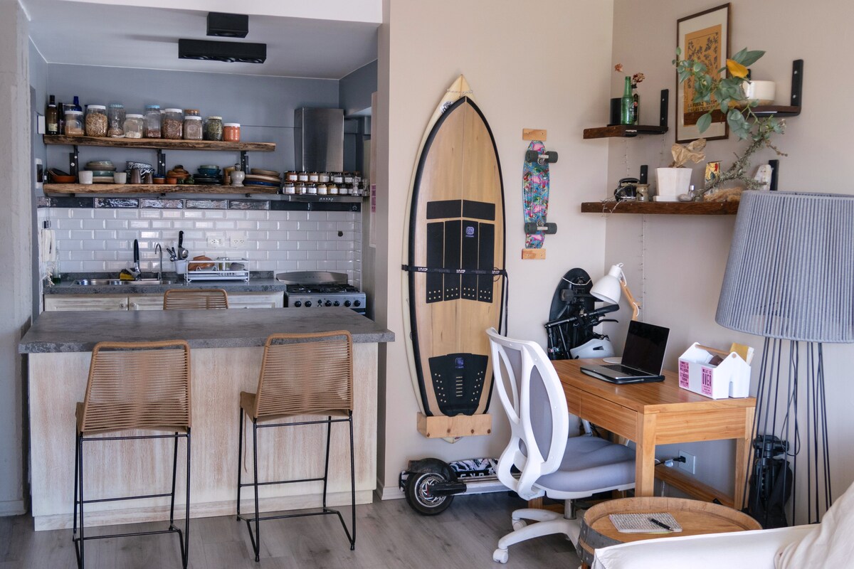 This unique place has its own style. Full of charming modern design details with everything you need for a relaxing and fun stay. Located in a neighborhood Beautiful and quiet with great green view from the window and a panoramic view of the city from the terrace. Nearby is the gastronomic pole of Palermo with various options for all tastes as well as the bohemian beauty of schoolchildren and Chacarita with different entertainment proposals.