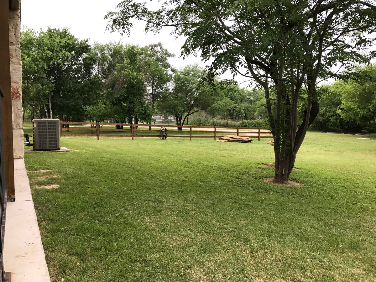 Casa bonica i acollidora en un entorn rural tranquil. Terrassa privada i piscina gran! (Ranxo de 33 acres) Només a 5 milles de les botigues. És una escapada romàntica perfecta o una escapada tranquil·la de la ciutat. La casa està totalment equipada per a totes les teves necessitats. Servei complet de bugaderia: 3 persones com a MÀXIM. Entrada automatitzada amb porta per a més seguretat. Sala d'estar i menjador a l'aire lliure. Boniques sortides i postes de sol. Sortiu a la terrassa i entreu directament a la piscina. Festival de la maduixa de Poteet a 5 milles de distància. A només 30 milles del passeig fluvial de San Antonio, SeaWorld i Fiesta