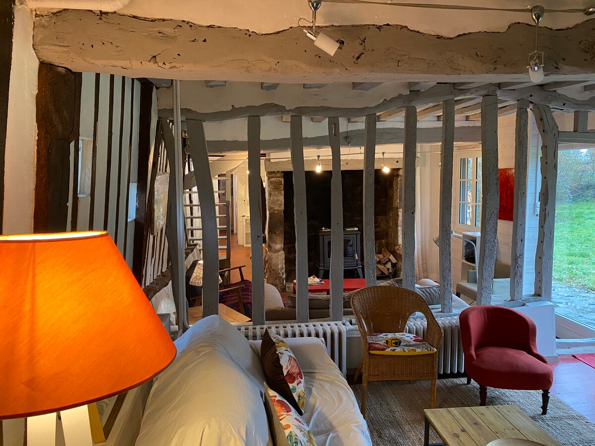 Al cor d'un poble del camp i a 4 km del mar , la "Petite Maison ", com ara una cabana al fons del bosc o un remolc amb colors brillants, està envoltada per un gran jardí exuberant i salvatge. Després d'un gran passeig pel mar o pels carrers rurals, és bo seure al costat del foc o passar el temps en una gandula escoltant... Un entorn que et garanteix la tranquil·litat i els recursos perfectes. Et donem la benvinguda a poetes , artistes i amants!