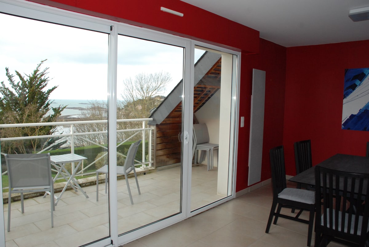Et encantarà el nostre loft molt lluminós de 60 m2, que ofereix una vista preciosa del mar. Només tindràs 100 metres per descobrir la gran platja de Caroual i agafar els senders GR34. Cap d'Erquy, Cap Fréhel ..... L'allotjament no és adequat per a nadons i nens menors de 10 anys. Llençols ben decorats i llits fets a l'arribada. "Segon dormir a petició amb un recàrrec de 10 euros per persona i nit addicional.