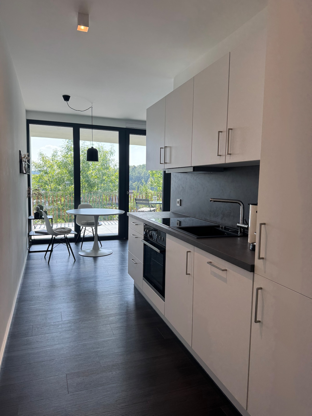 Relaxa't en aquest espai especial i tranquil i gaudeix de la vista de la vall. L'apartament, dissenyat amb cura, està situat en una zona residencial tranquil·la i ben cuidada als afores, just al costat del bosc. Amb la seva pròpia terrassa i zona per prendre el sol, pots gaudir d'un descans acollidor al camp. Els voltants conviden a fer excursions a peu, en bicicleta de muntanya o a córrer. A poc més amunt de l'apartament hi ha el "vol d'alta altitud", i el "P-Weg" tampoc no és gaire lluny.