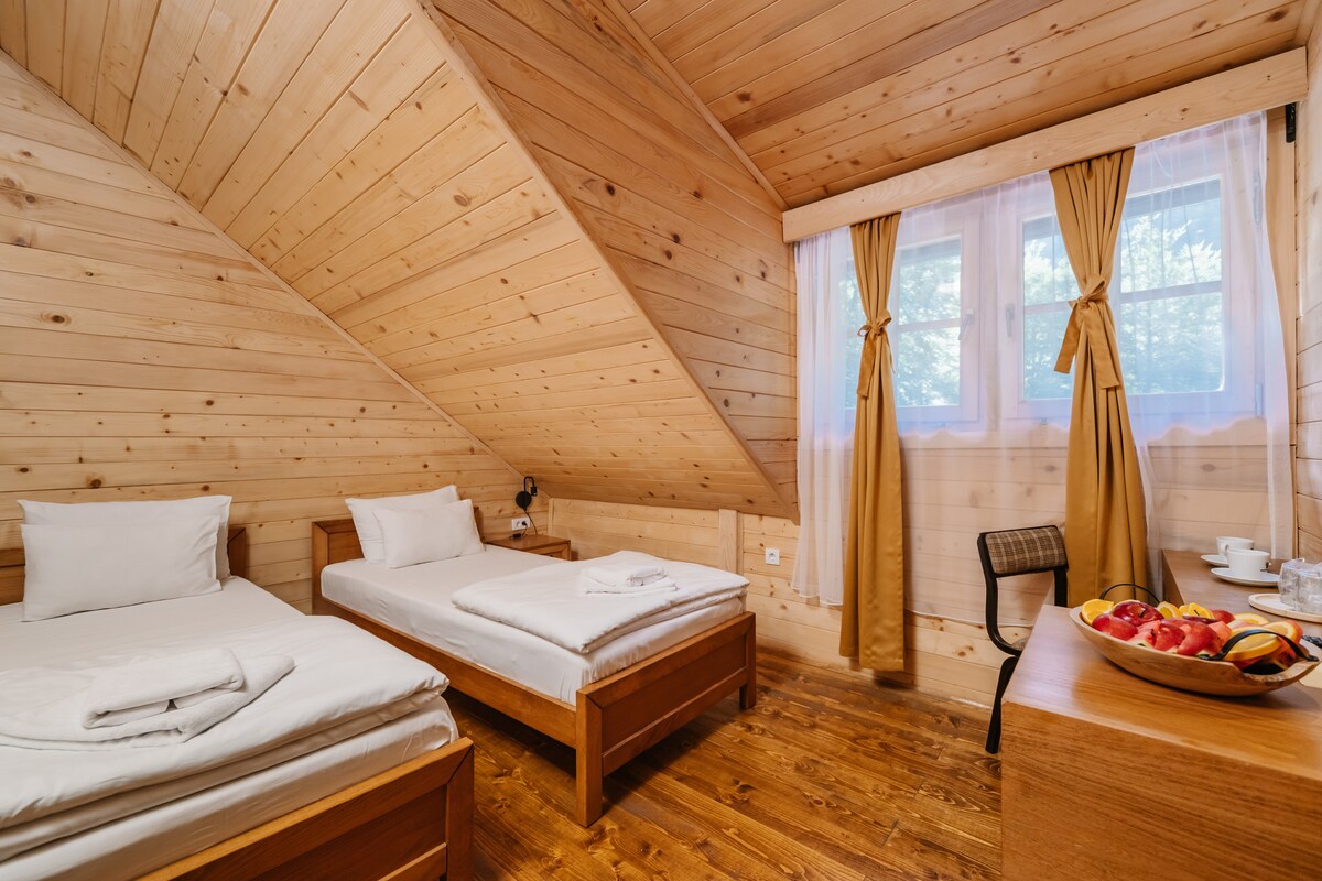 Casa acollidora i moderna en una natura preciosa, feta de materials naturals. Hedonist Village és un lloc tranquil amb parc infantil, amb 2 llocs de barbacoa, a només 5 minuts del centre. Cada casa té aparcament propi. Al nostre restaurant oferim esmorzar, bufet tradicional per a 8e/persona. Els nostres hostes poden aconseguir bicicletes de forma gratuïta. També podem oferir-te ràfting al riu Tara, senderisme, excursions fora de carretera, conducció en quad, via ferrata, equitació...