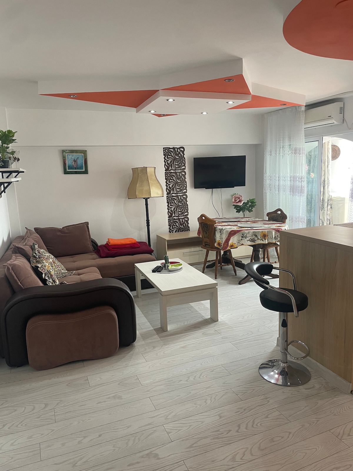Un modern pis familiar totalment renovat l'agost del 2020, que ofereix allotjament per a un màxim de 4 persones. Gaudeix d'una sala d'estar espaiosa amb televisor intel·ligent i wifi inclosos, un dormitori principal de luxe amb televisor intel·ligent i un dormitori infantil amb llit extensible, escriptori i pissarra. La cuina inclou nevera, forn i cafetera. El pis es troba a 5 minuts en cotxe del centre de Ploiesti i a 5 minuts en cotxe del centre comercial Ploiesti. El nostre aeroport internacional es troba a només 46 km de l'allotjament.