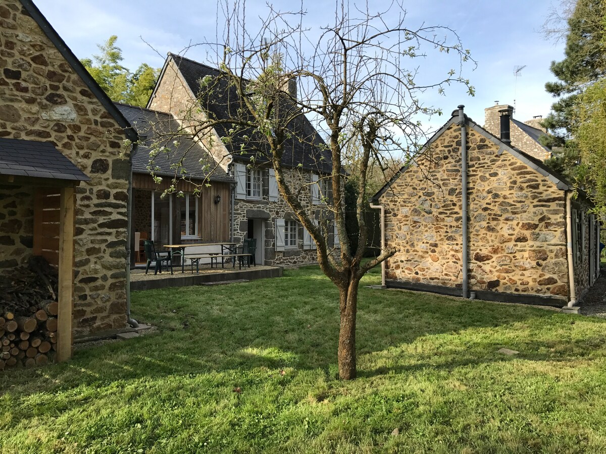 A beautiful collection of old stone cottages on the edge of a sleepy hamlet a few hundred yards from the idyllic Rance estuary. Cosy in winter - with 2 wood stoves and a stunning kitchen/dining extension. And perfect in summer with a huge garden, patios, and woods. We only rent the entire property to ONE group at a time. It is suitable for a family, or a larger group of up to 8 adults, maximum.