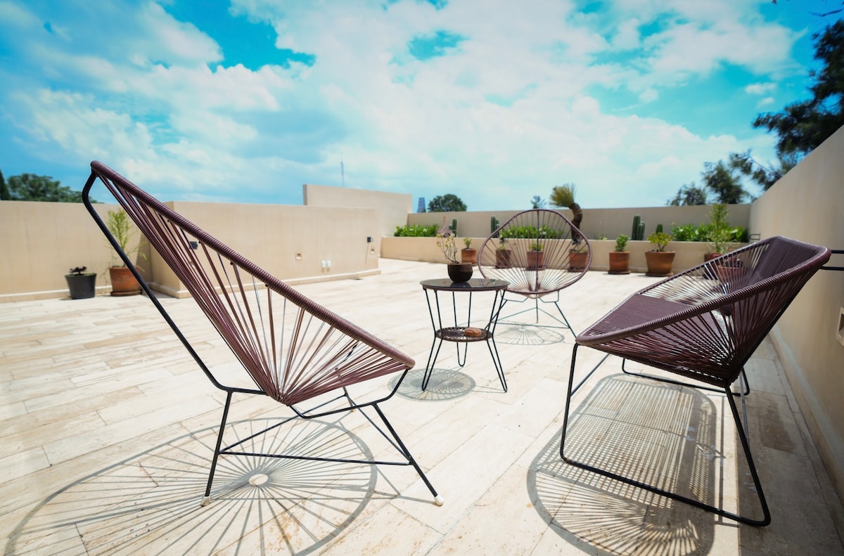Loft 🏙️ nou i de gamma alta a Santa María la Ribera: interiors tranquils, llençols de qualitat hotelera, disseny vintage i modern. Pren un cafè al balcó i puja al terrat per gaudir d'una vista panoràmica de la ciutat. Cuina super equipada, wifi ràpida, rentadora/assecadora, televisor intel·ligent. Avantatges de l'edifici: gimnàs i seguretat les 24 hores. Camina fins al quiosc Morisco, mercats, cafès; a minuts del Centre Històric, Reforma, Polanco. Ideal per a estades de feina o de lleure, curtes o llargues: amb estil, cèntric i molt còmode.